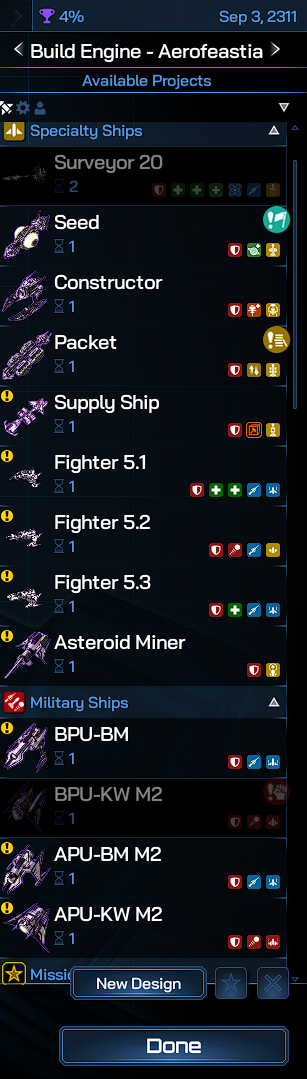 Had the rebuild the Ysengard ship 2 times and convert probe to Stargazer ship once. They never appear in my shipyard.